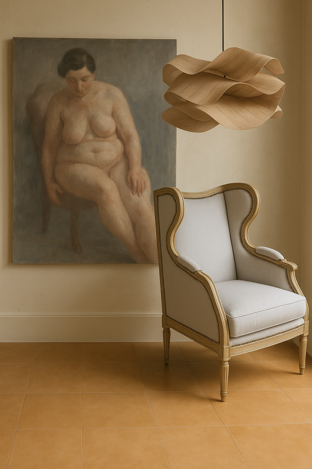 The largest room in the home is layered with intention—sculptural seating, tonal light, vintage details, and quietly functional design that invites conversation, not performance.